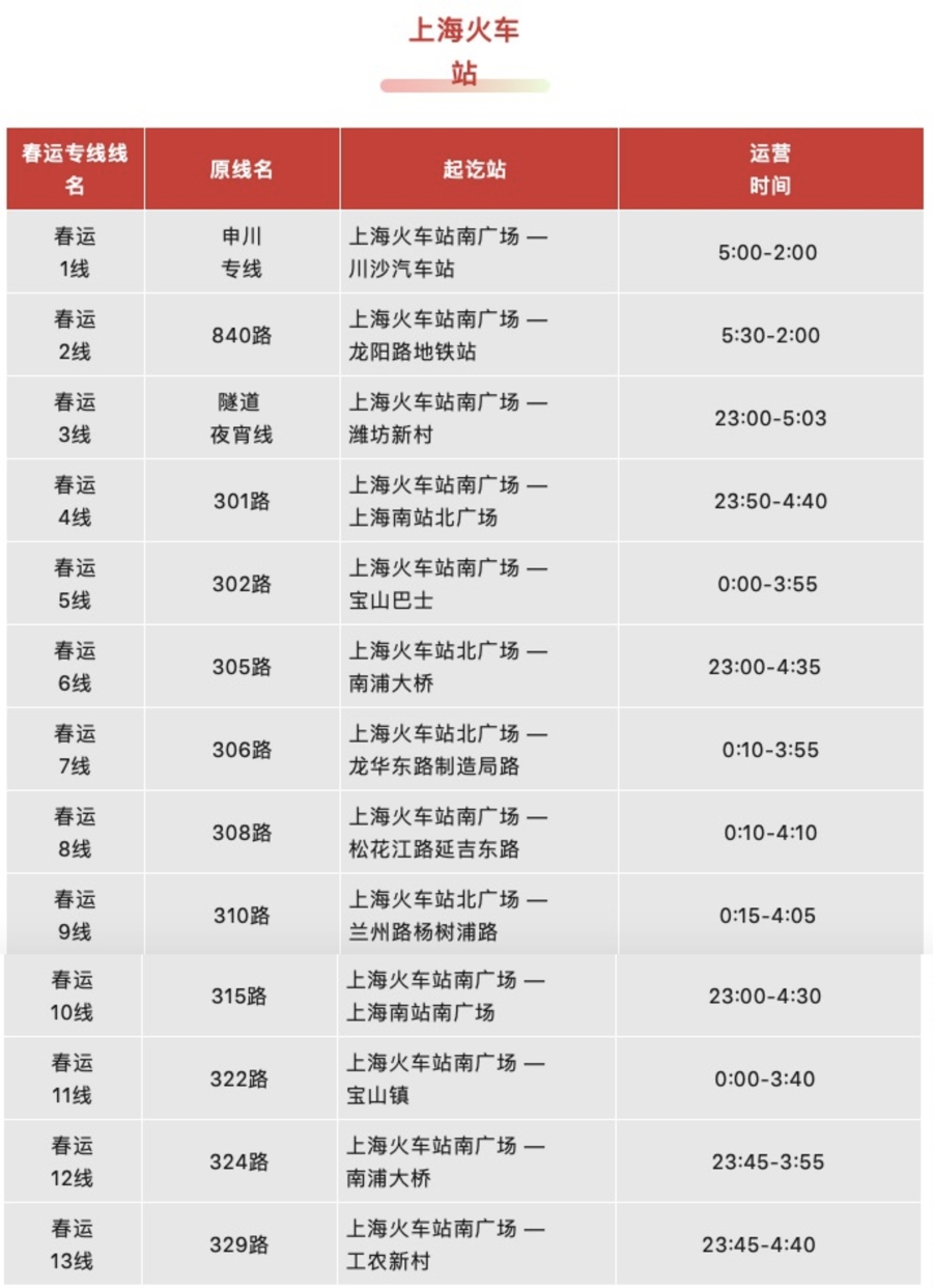 上海火车站春运专线运营日期为2月14日至3月5日。