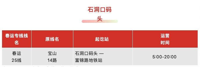 石洞口码头春运专线运营日期为2月14日至3月5日。