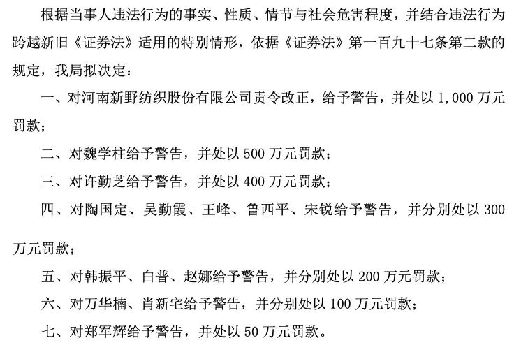 针对上述行为,证监会对*ST新纺责令改正,给予警告,并处以1000万元罚款。
